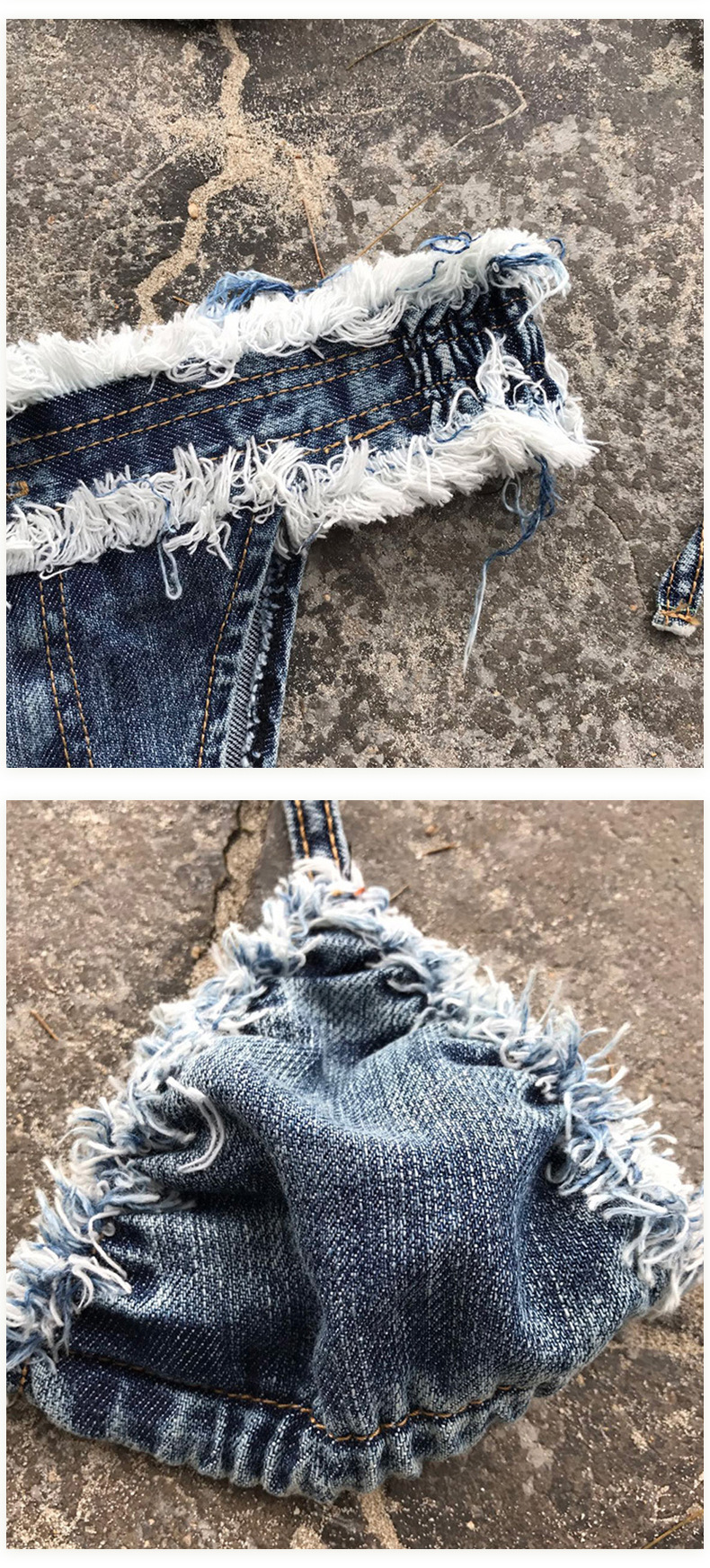 Super Short Denim Shorts Hot Pants Sexy Low Waist Bikini Two Piece Set