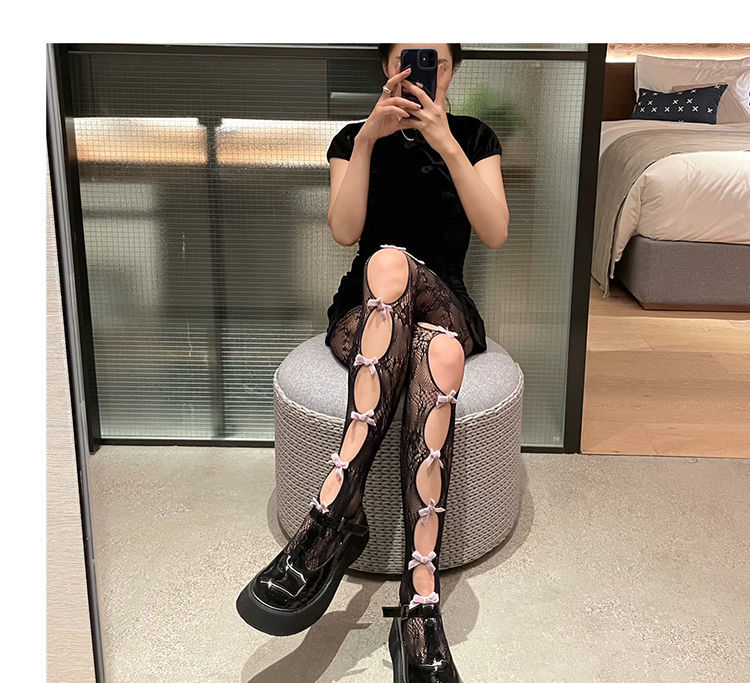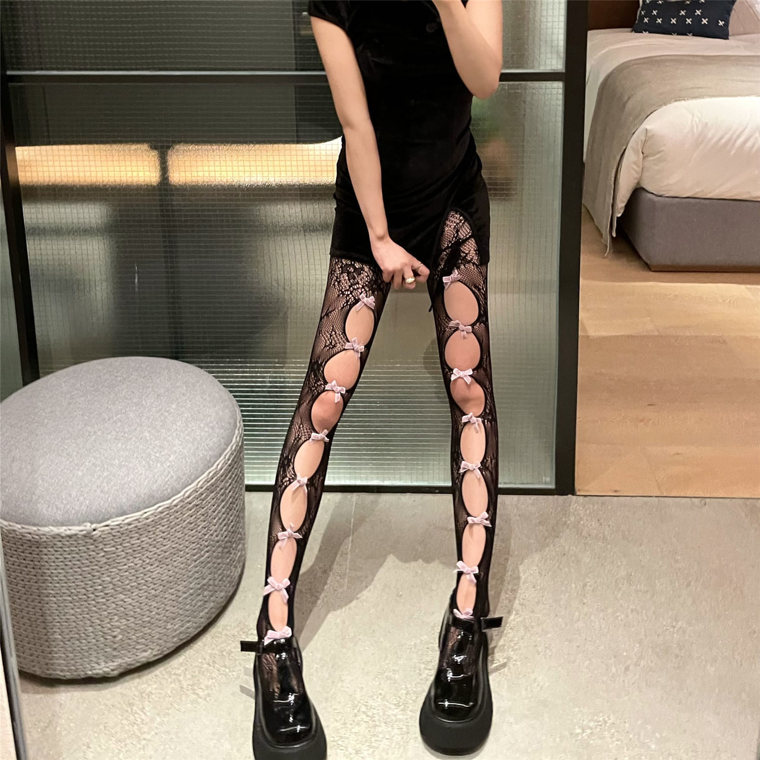 Broken hole retro butterfly jacquard fishing net black silk stockings