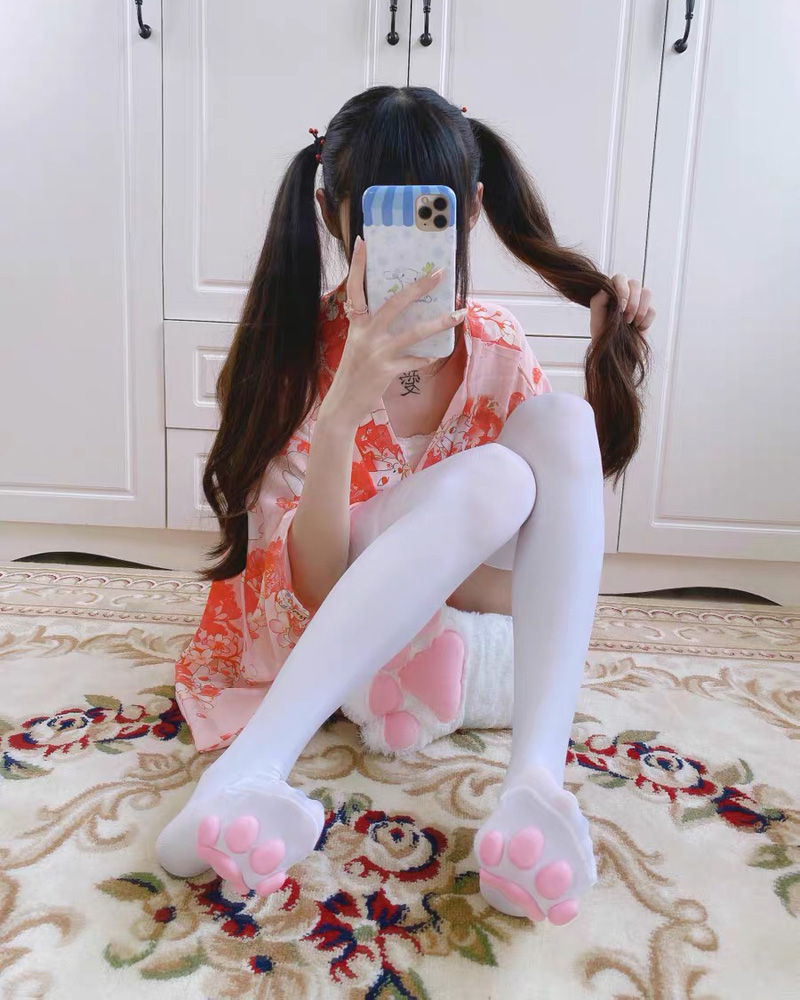 Kawaii Clothing 3D Cat Paw Over The Knee Stockings Black White Pink Tights Cosplay