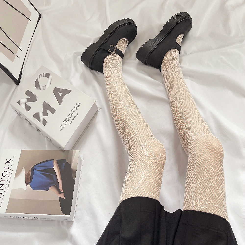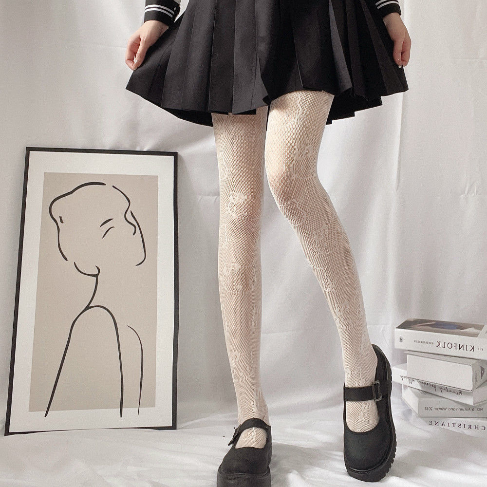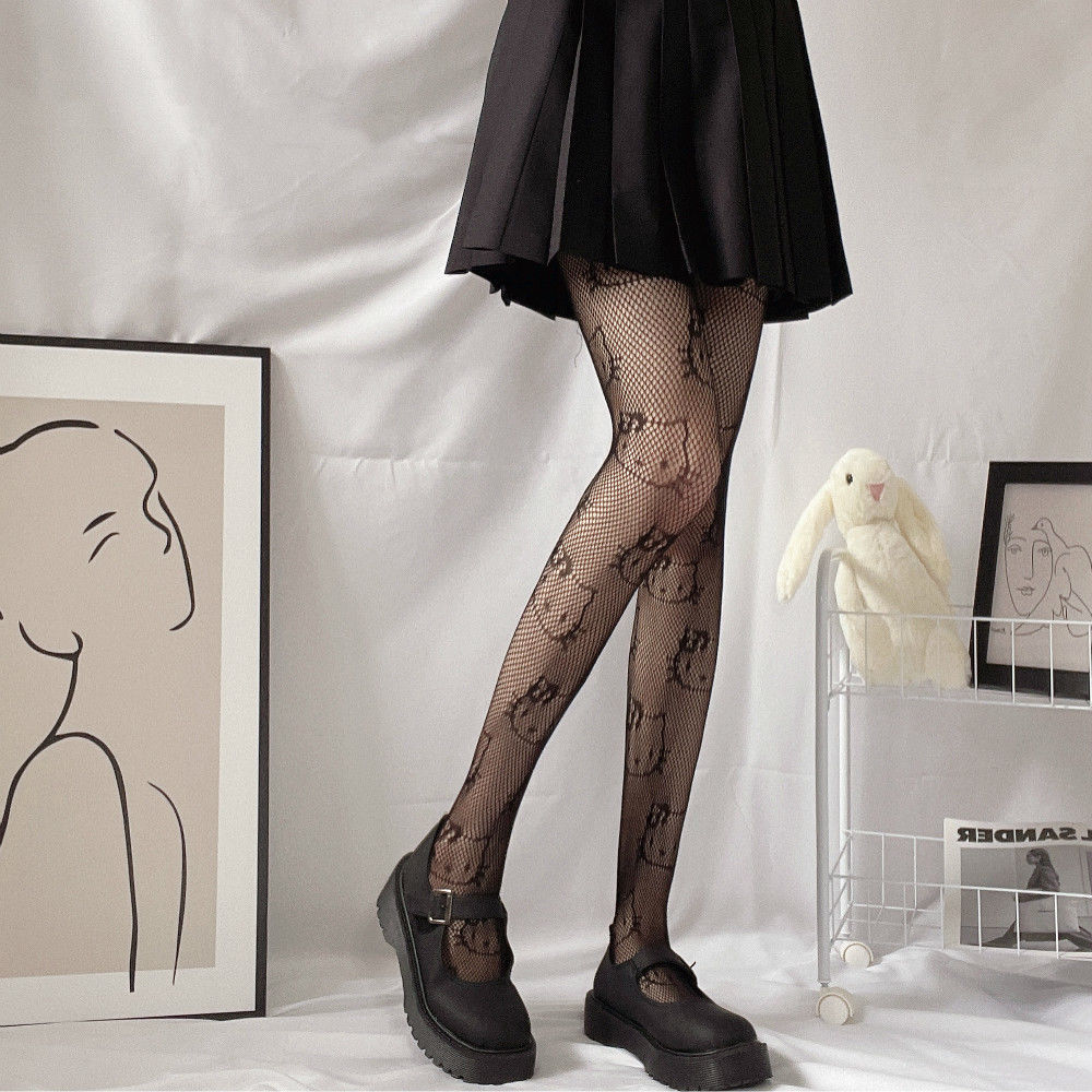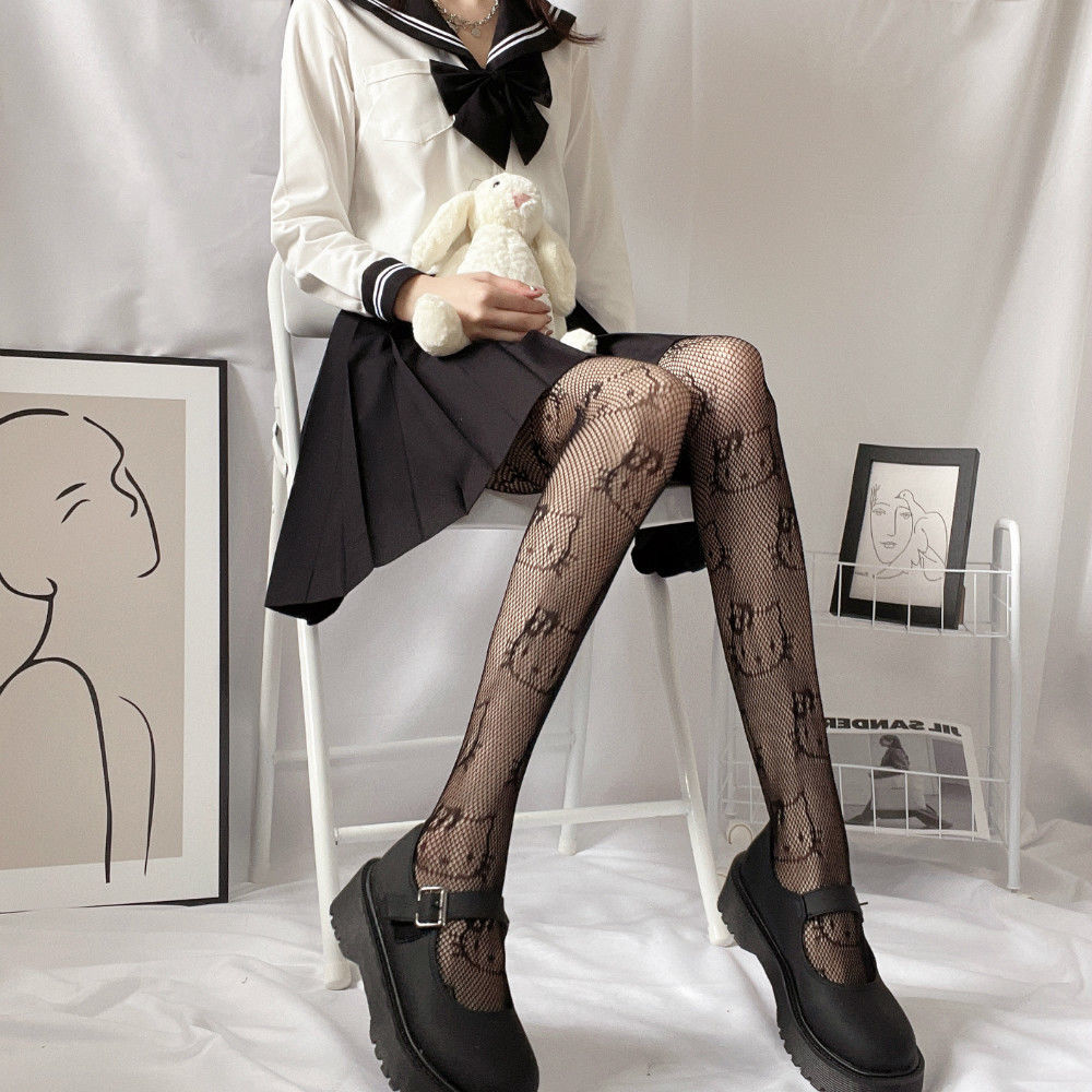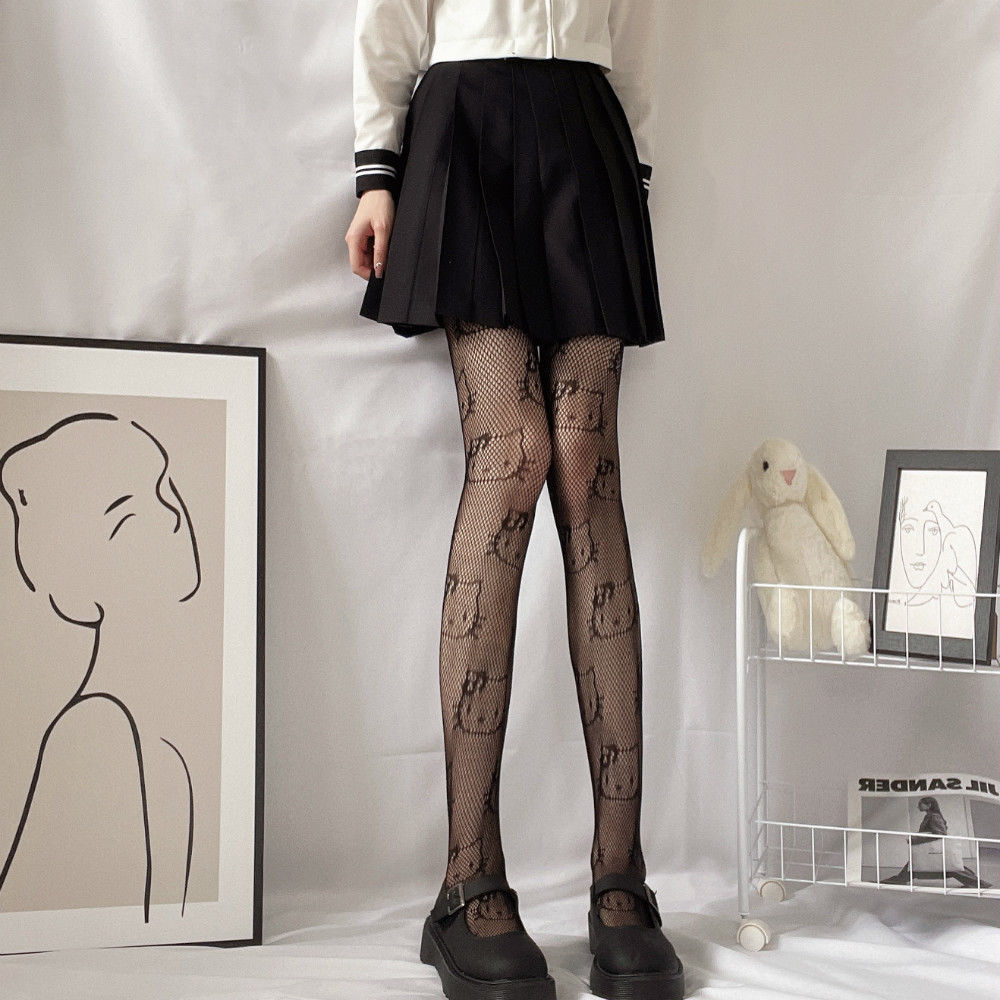 Kitty Cat JK Black Silk Stockings Female Anti Hook Silk Sexy Thin Hollow Fishing Net Stockings Student Summer Pantyhose