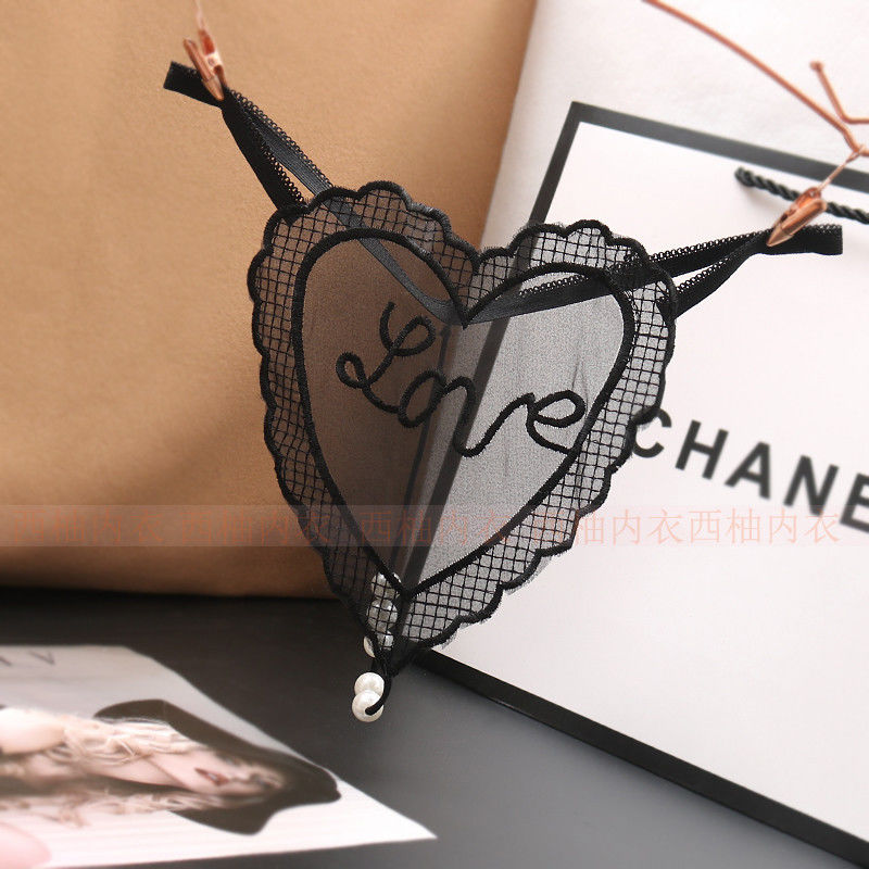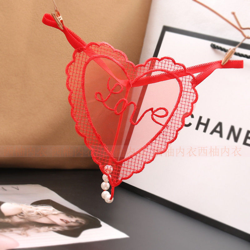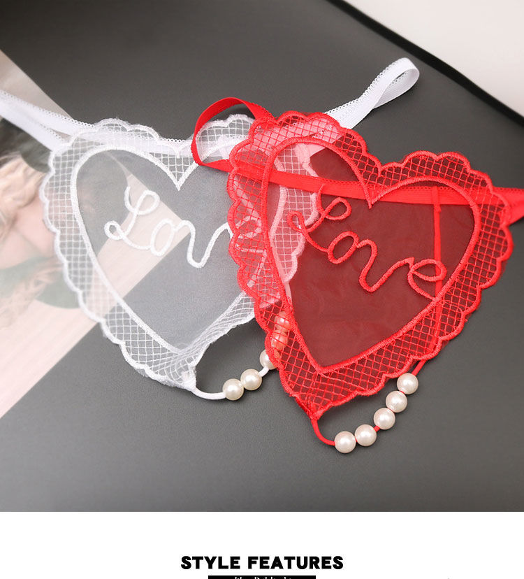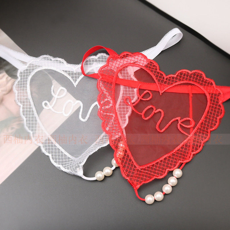 Lace Embroidery Love Naked Pearl Massage Mesh Sexy Thong