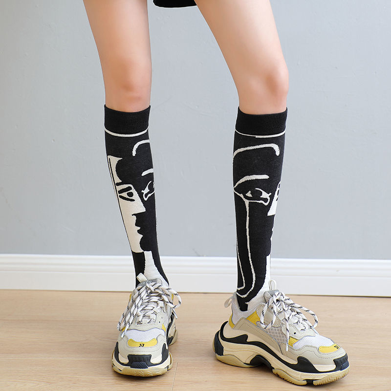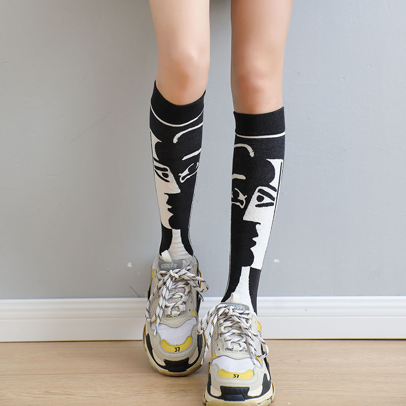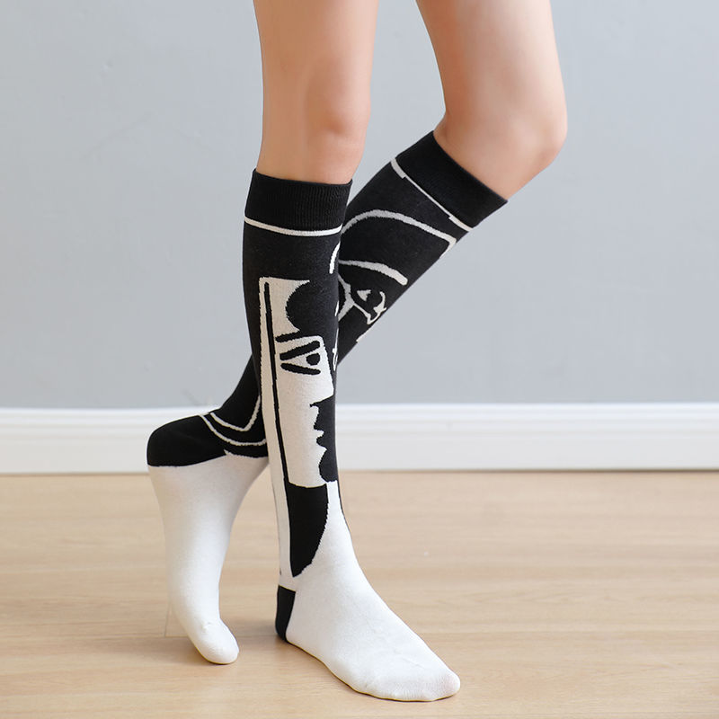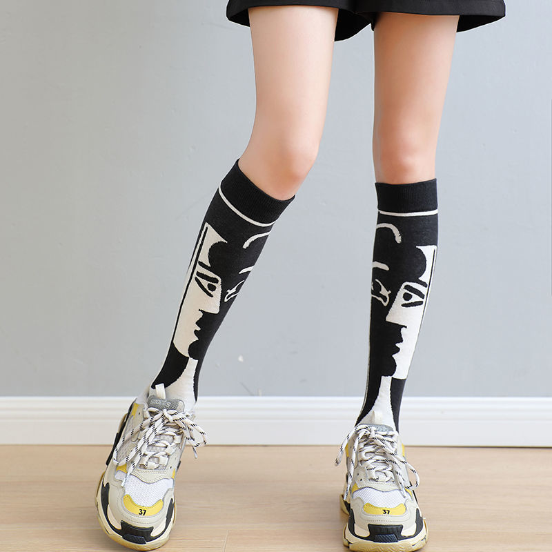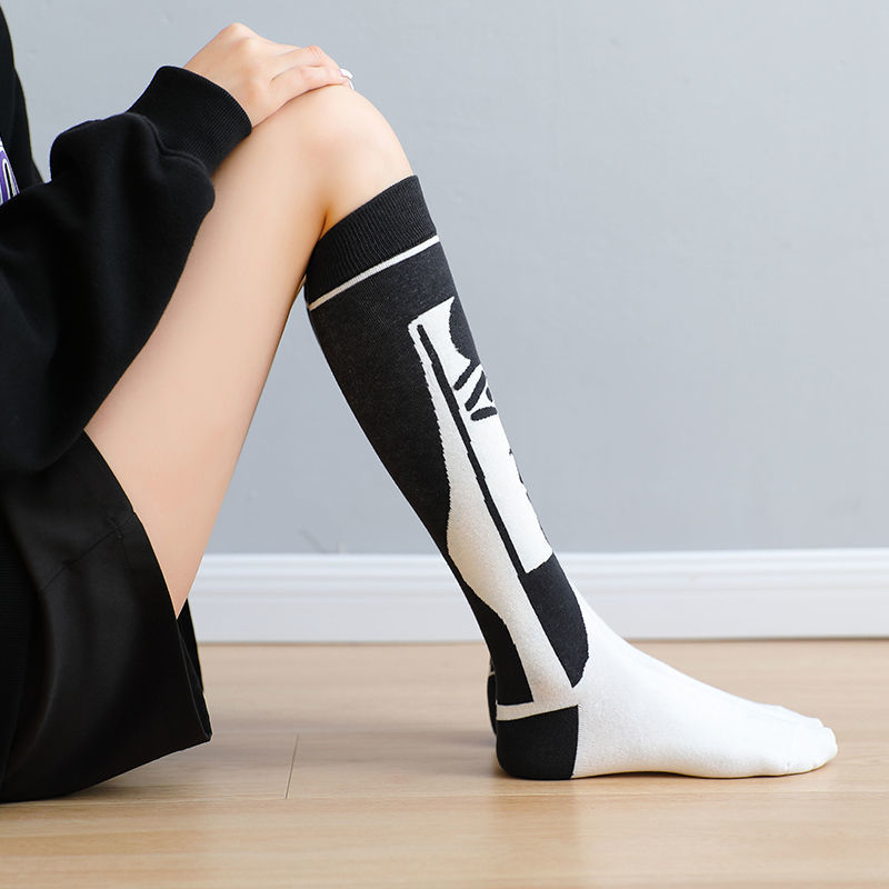 Black And White Autumn Fashion Sweet Girl Medium Long Cotton Socks