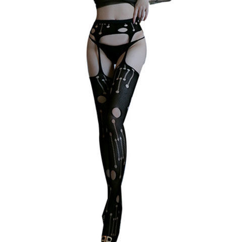 Sexy All-in-one Sling Hole Socks Four Side Open File Women's Perspective Non Detachable File Socks Sling Socks Black Silk Stockings