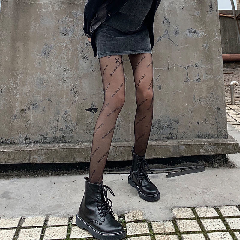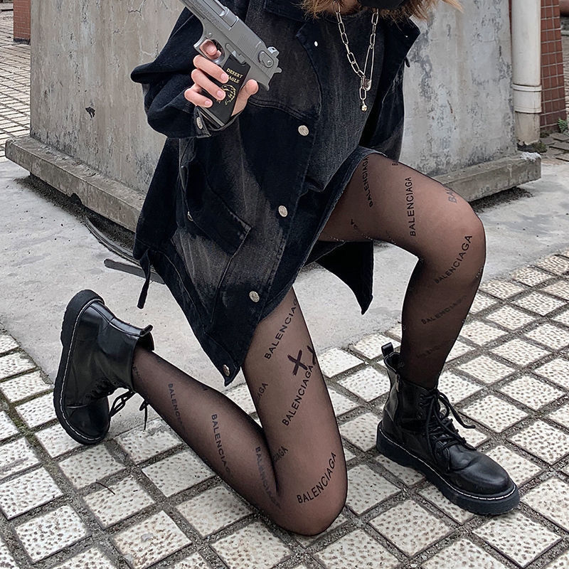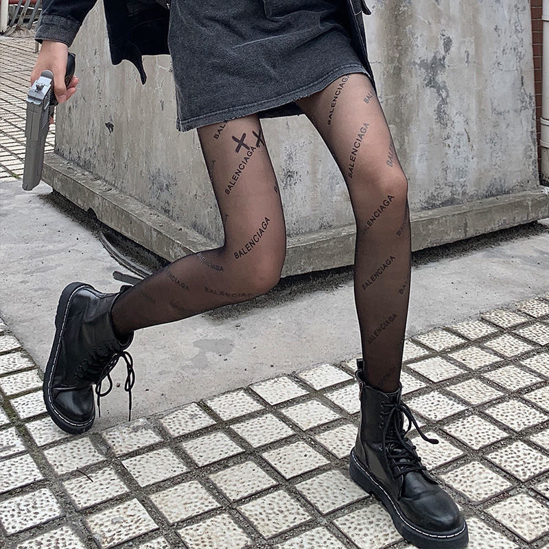 Black Silk Stockings Letter Thin Anti-snag Silk Pantyhose