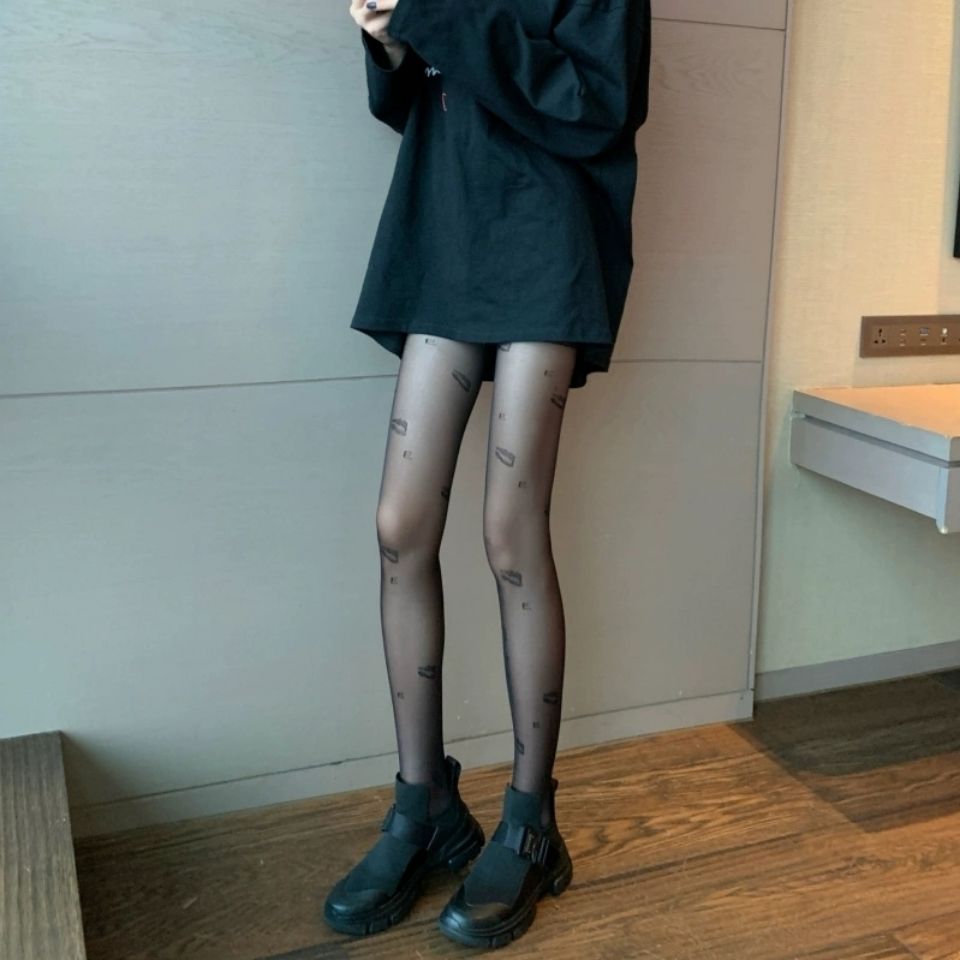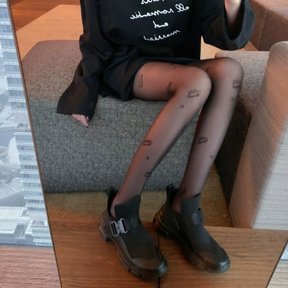 Black Stockings Thin Jacquard Sexy Leggings Lip Print Pantyhose
