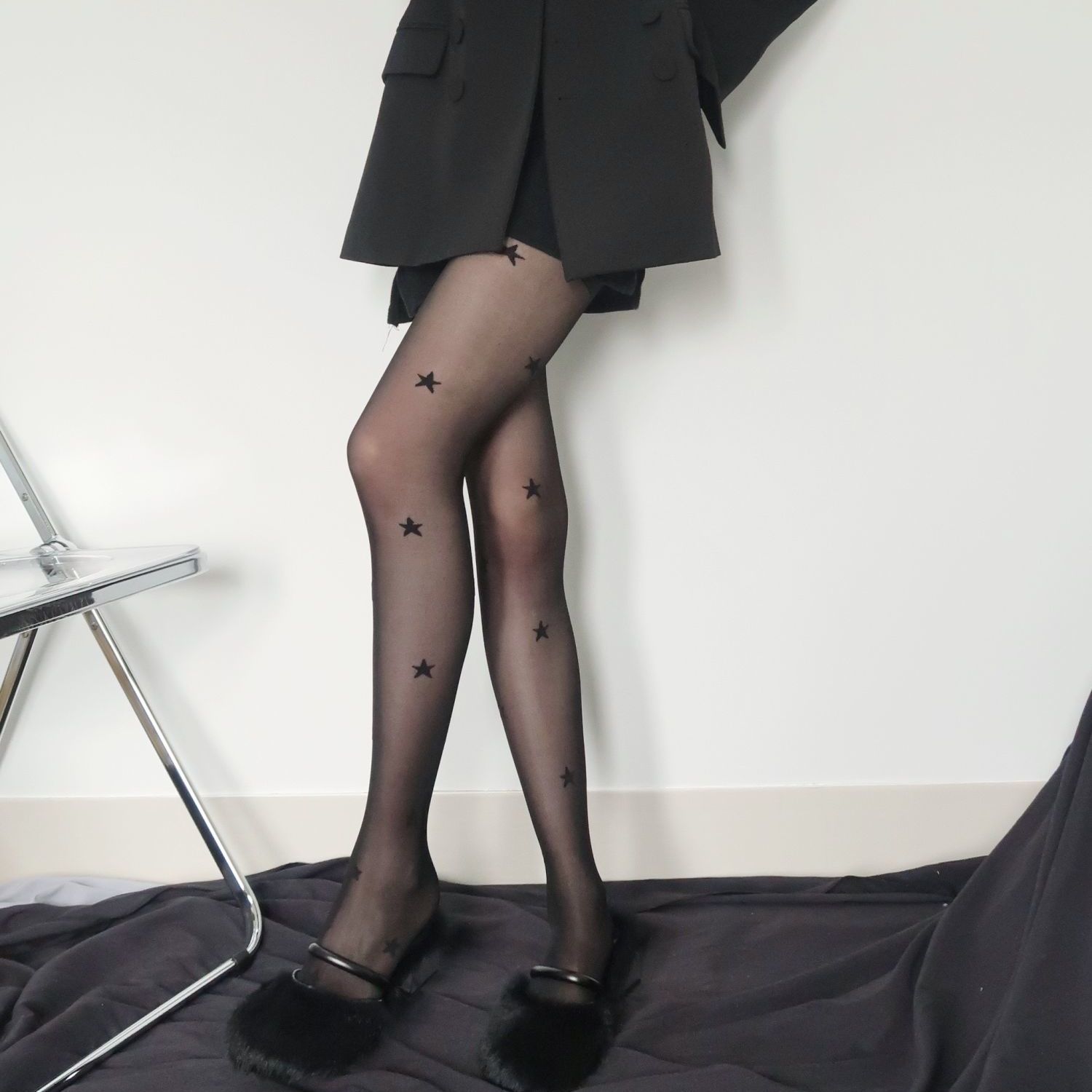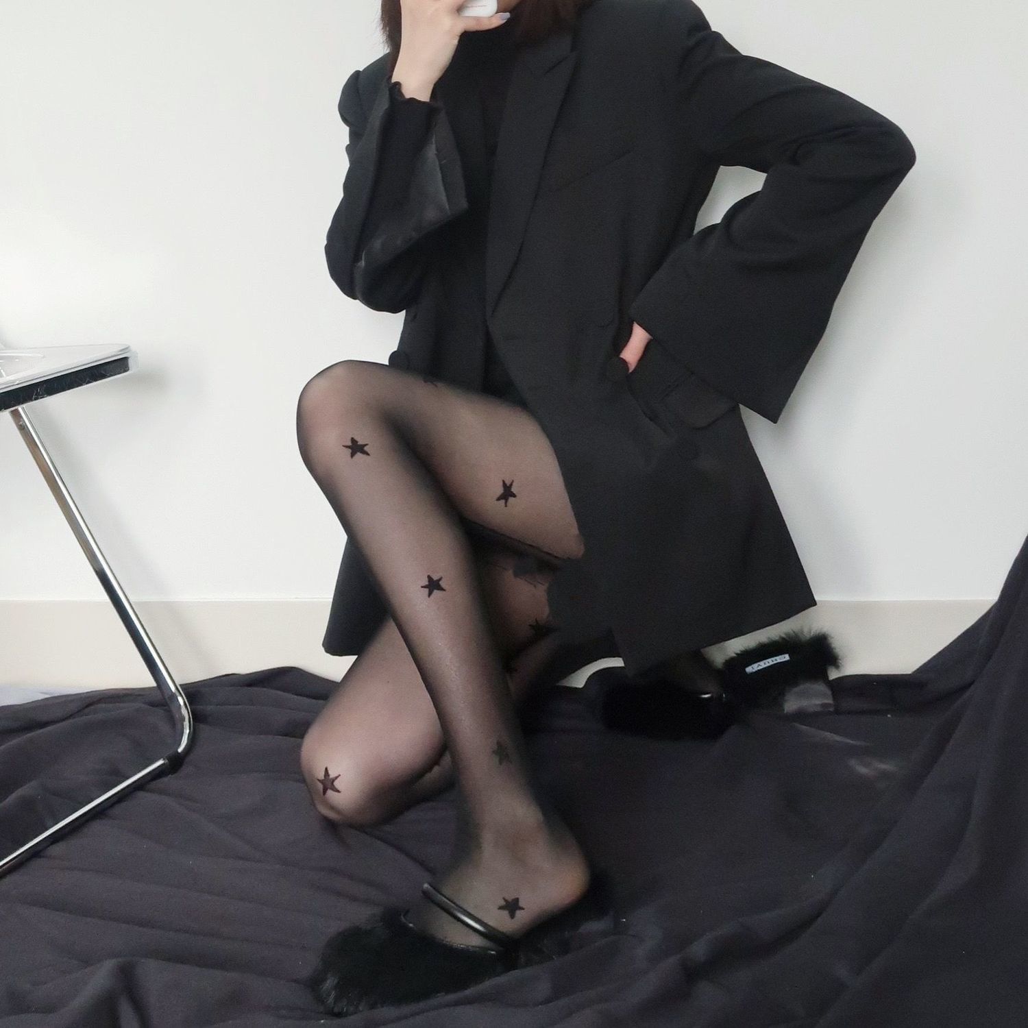 Lori JK Fake Stitched Black Silk Stockings Show Thin Bottomed Pantyhose Nightclub Silk Stockings