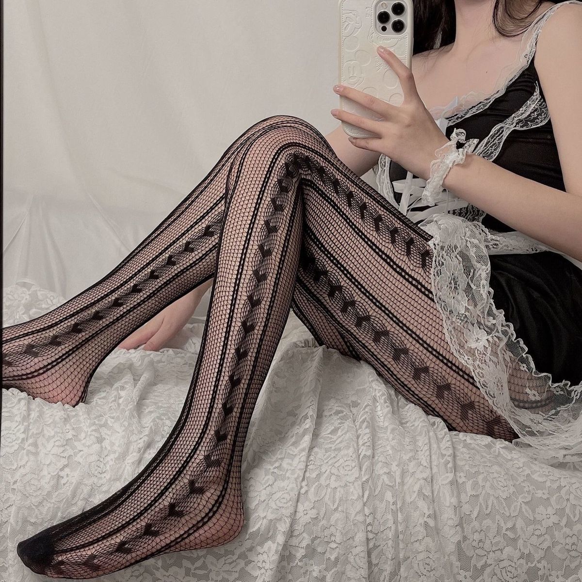 Love All-match Leggings Tights Hollow Fishnet Socks Jk Hot Girl Black Stockings