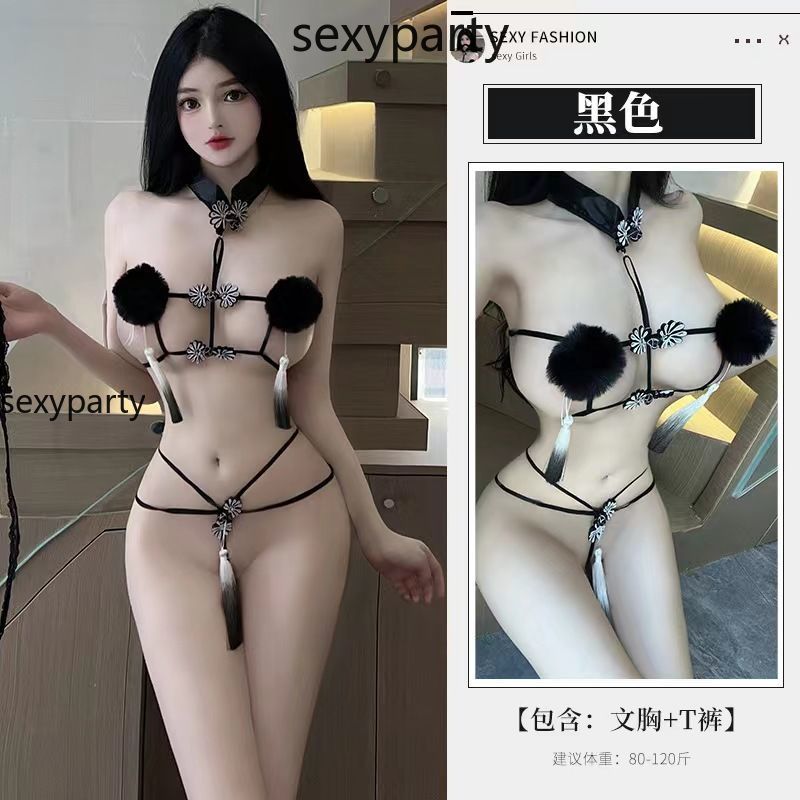 New Three-point Transparent Fur Ball Lace-up Lingerie