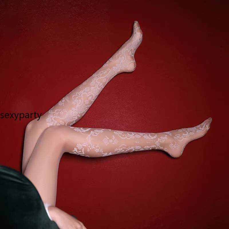 Sexy Retro Hollow Floral Jacquard Thin Lace Stockings with Sexy Patterns and Fashionable Jumpsuit Socks