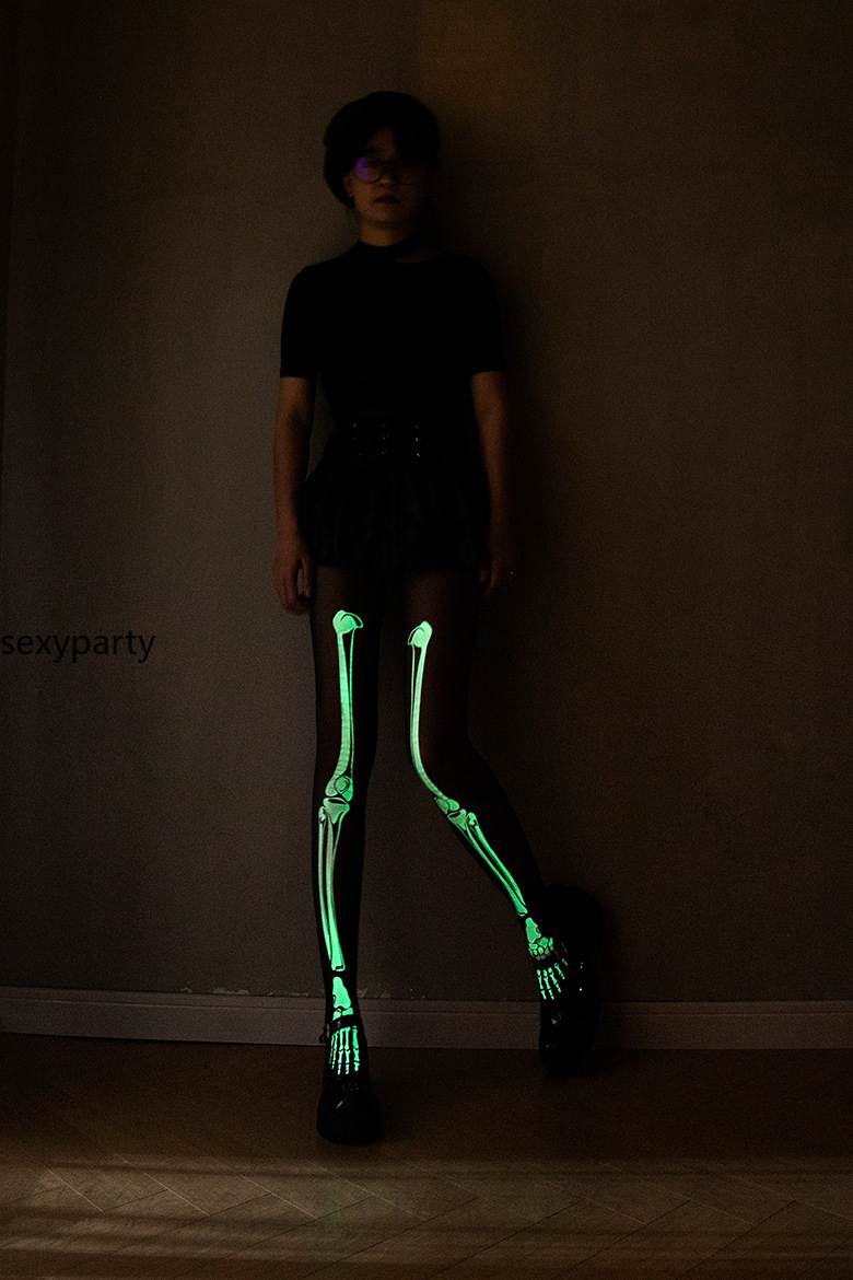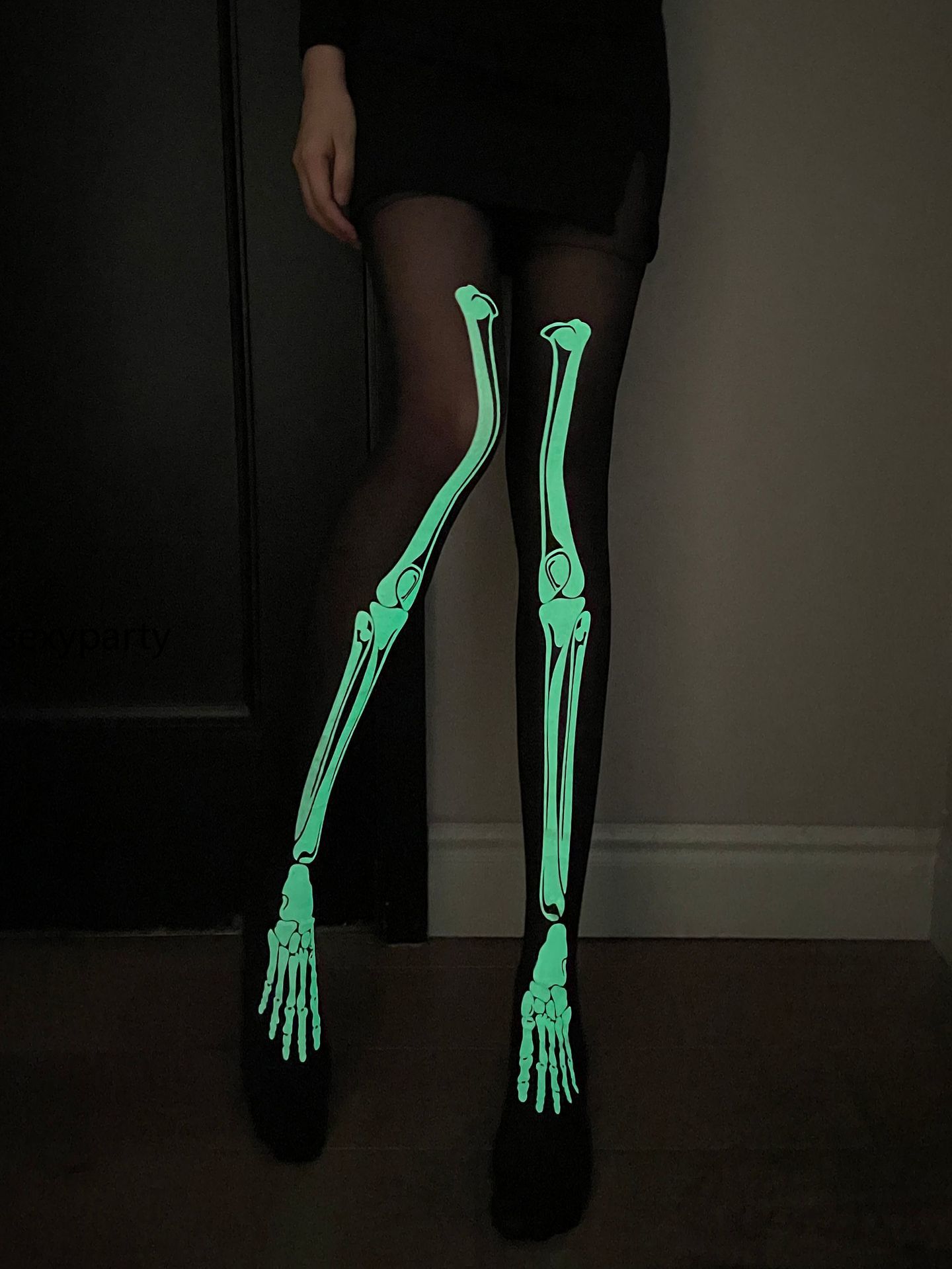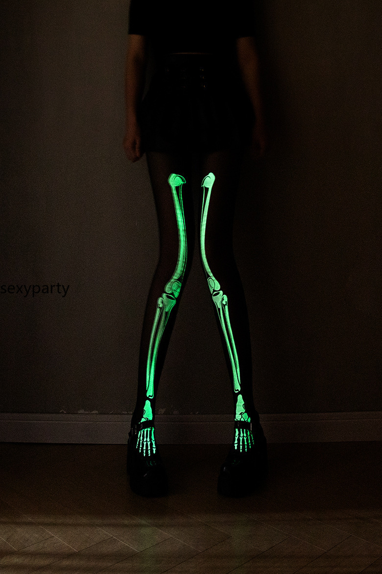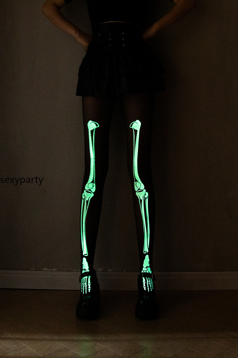 Sexy Black Luminous Skull Skeleton Luminous White Bone Stockings Disco Dancing Halloween Pantyhose
