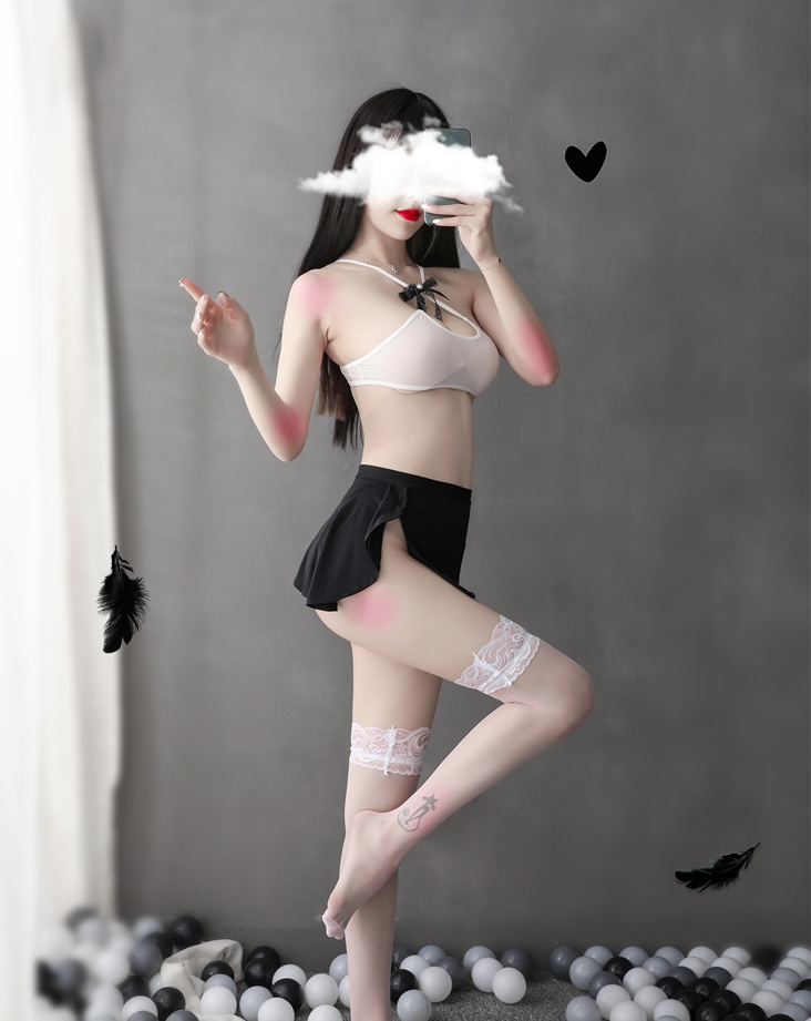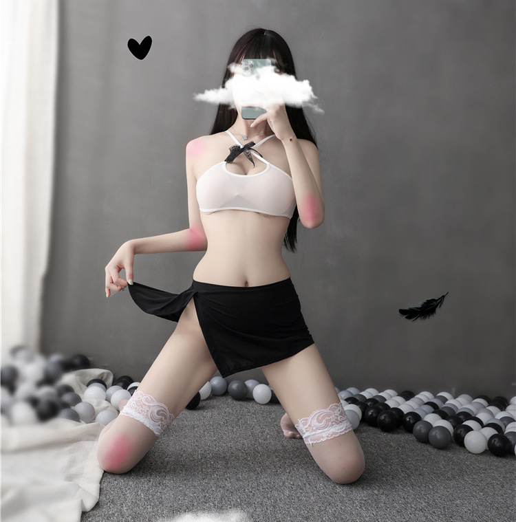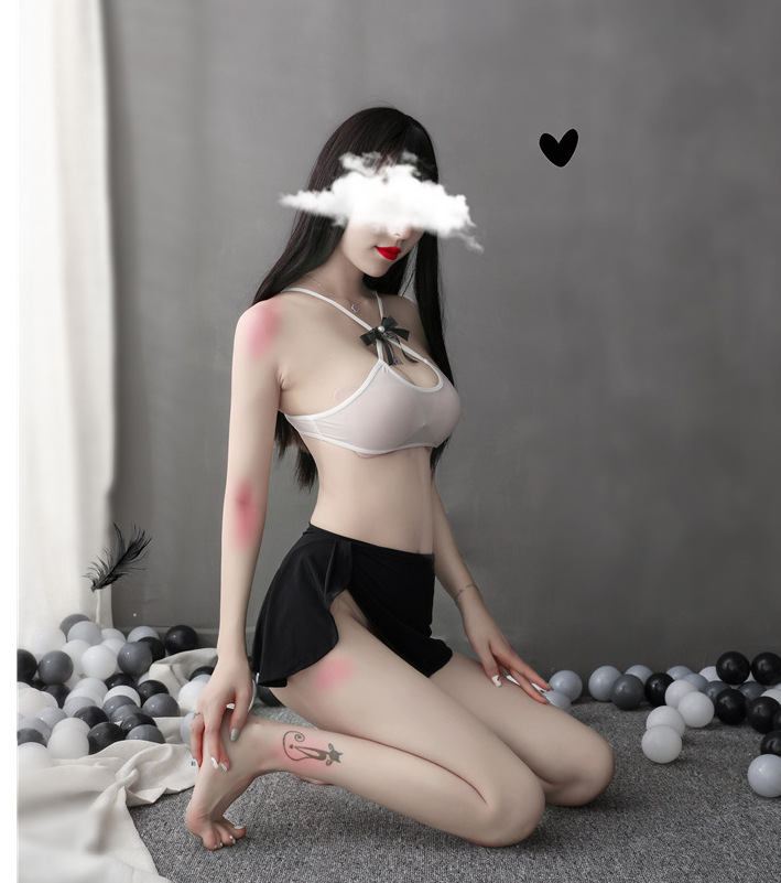 New Three-point Transparent Fur Ball Lace-up Lingerie