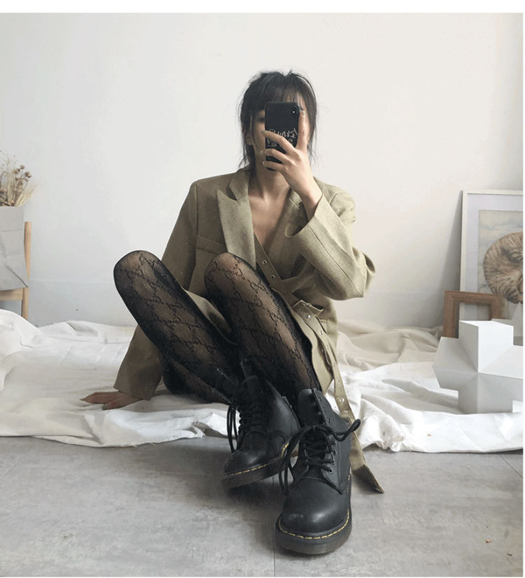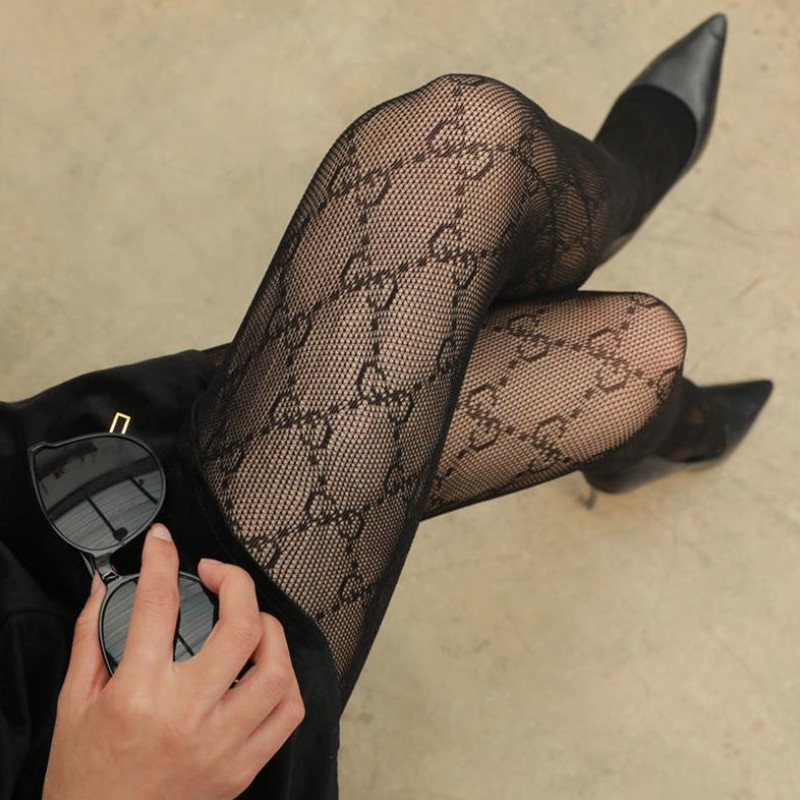 Double G English Alphabet Hollow Net Stockings Spring And Autumn Stockings Thin Pantyhose(The second pair is only half price)
