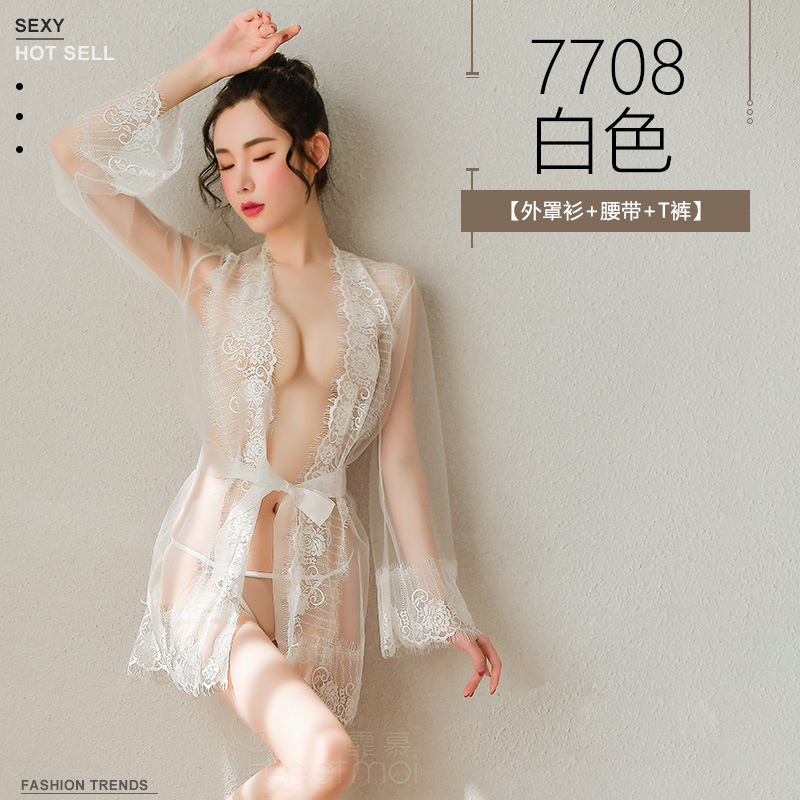 Stitched Lace Perspective Nightgown Pajama Sexy Three-point Suit
