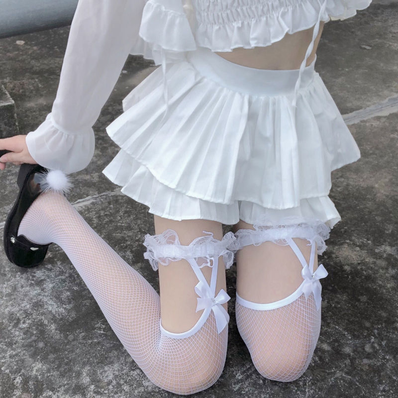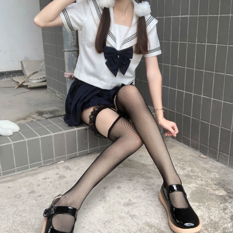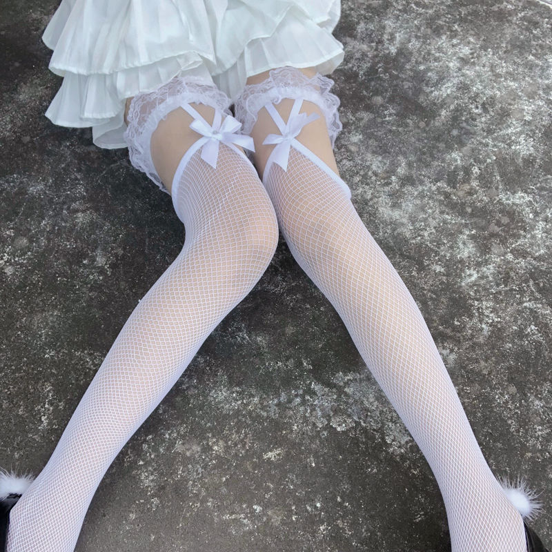 Lace Antiskid Knee Socks Sexy Black Silk Stockings Leg Ring Sling Hollowed Out Fishing Net Socks