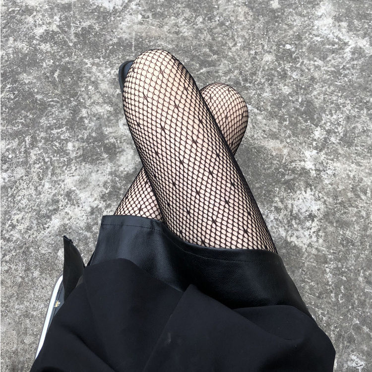 Fishing Net Socks Thin Dot Hollowed Out Beautiful Leg Black Silk Stockings Bottomed Jumpsuit