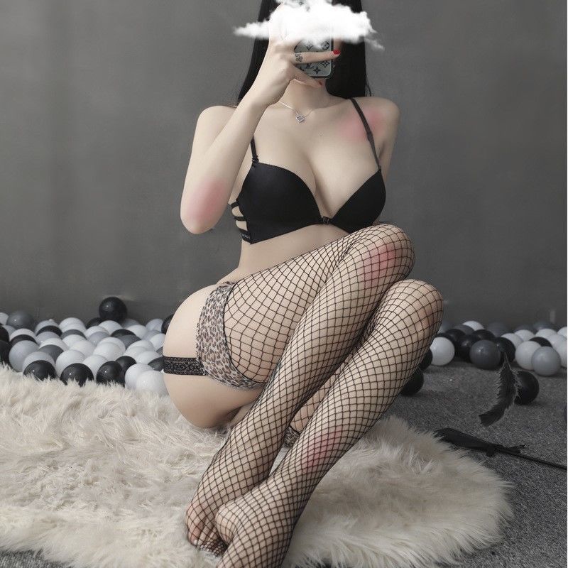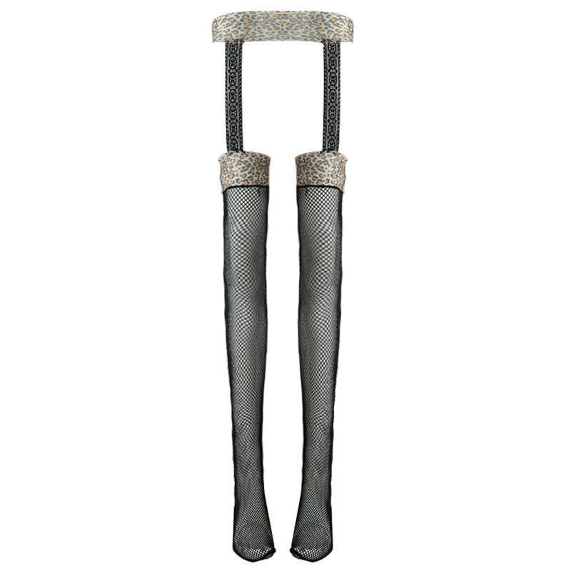 Black Silk Stockings Fun Suspenders Sexy Leopard Fishnet Stockings