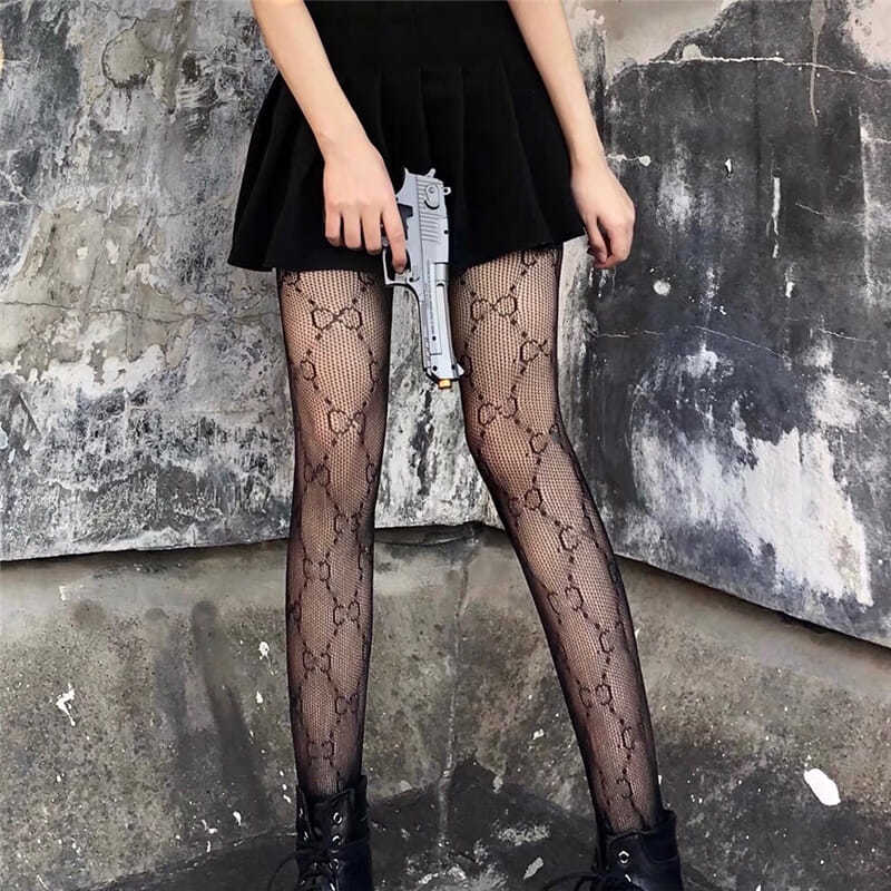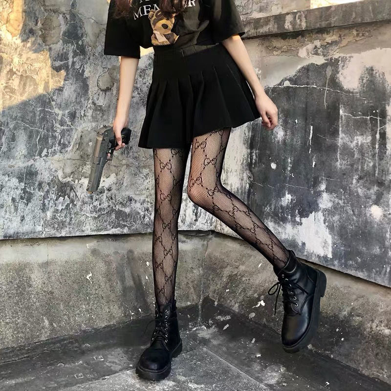 Popular Letter Silk Stockings Retro Ins Sexy Fashion JK English B-word Bottomed Jumpers Fishing Net Stockings