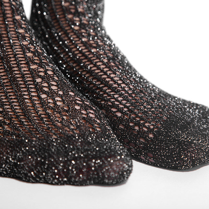 Vertical Stripe Shiny Silver High Tube Stockings Hollow Mesh Stockings