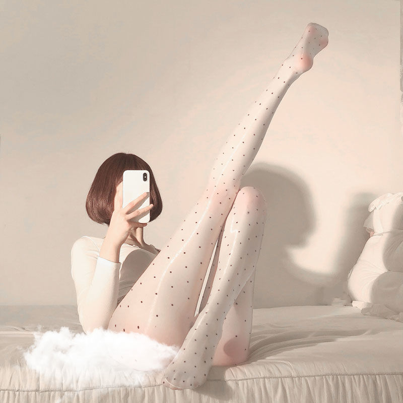 Sexy Lace Fun Thickened Panties Stitched Open Wave Point Silk Stockings