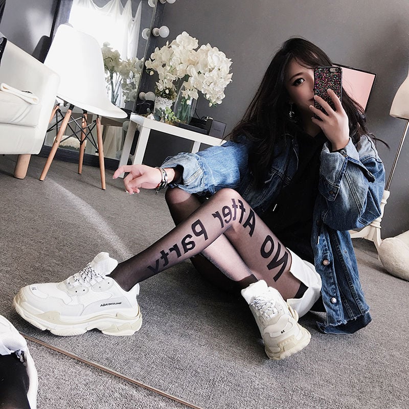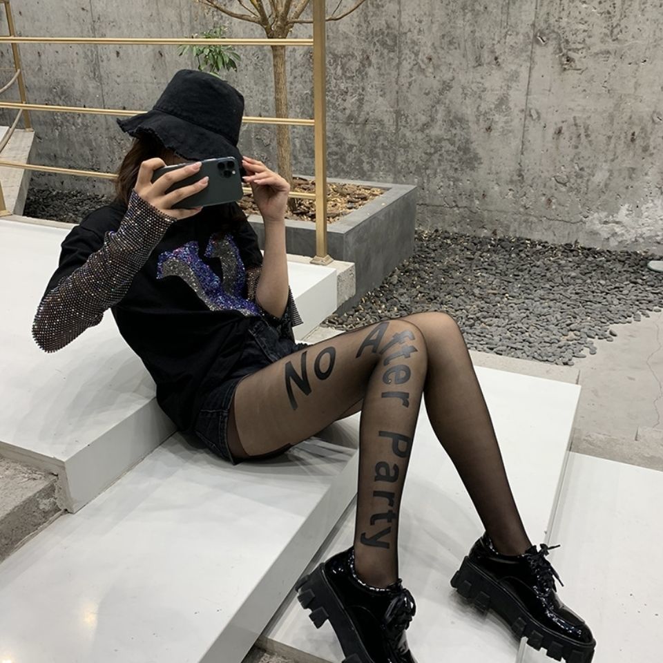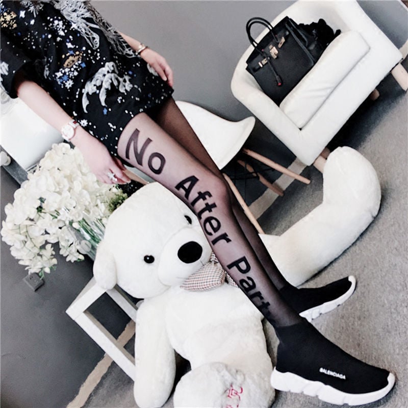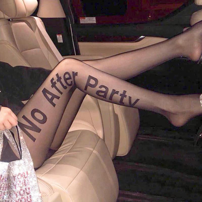 "No After Party"Letter One-piece Pantyhose Nightclub Silk Stockings