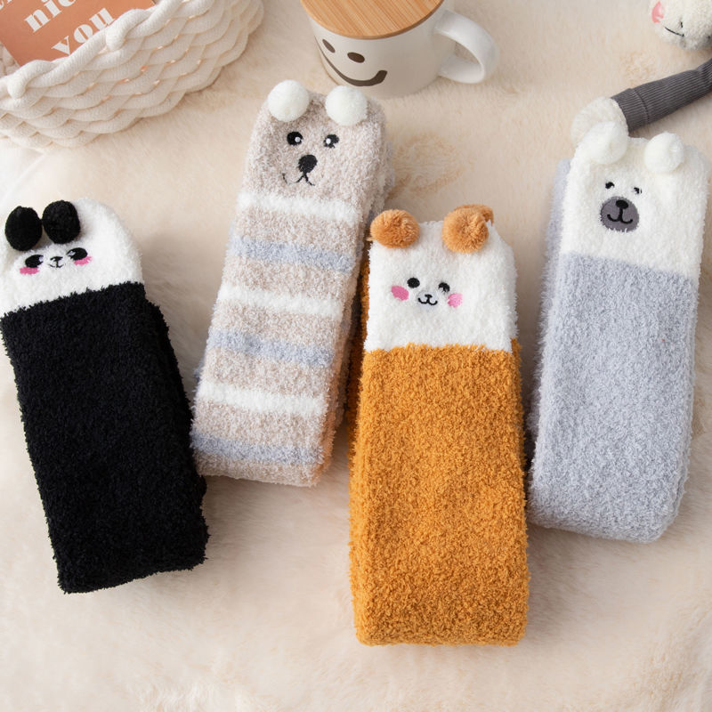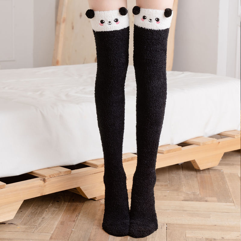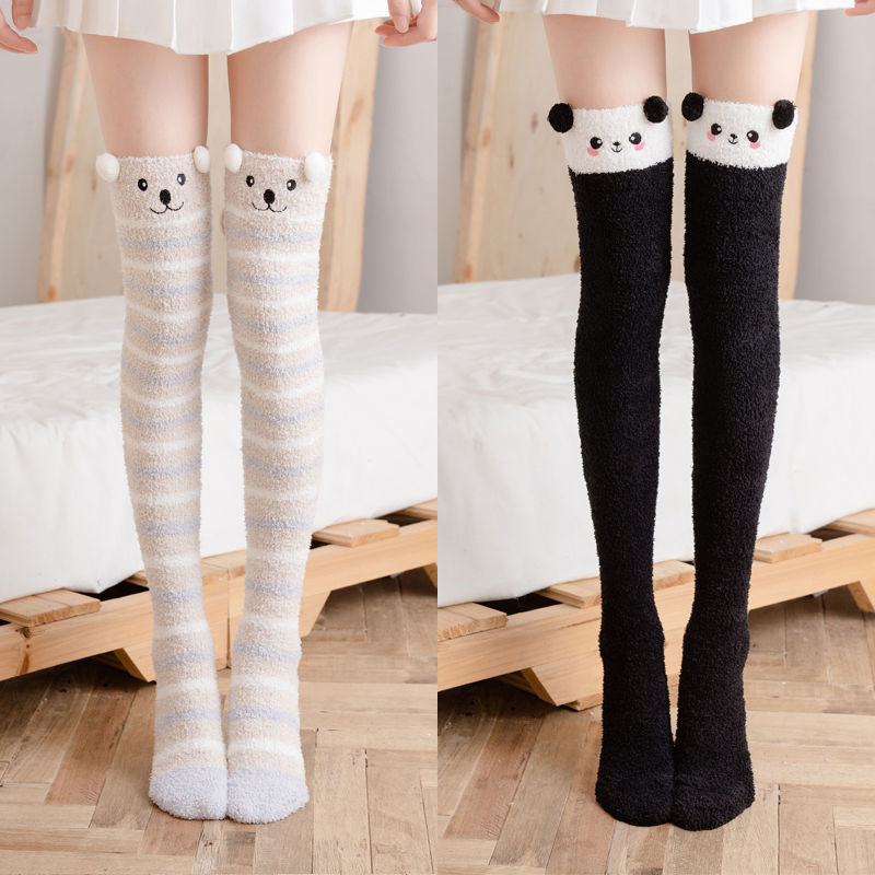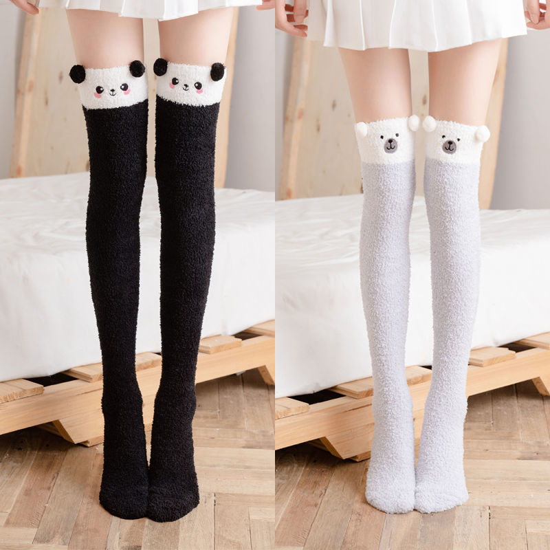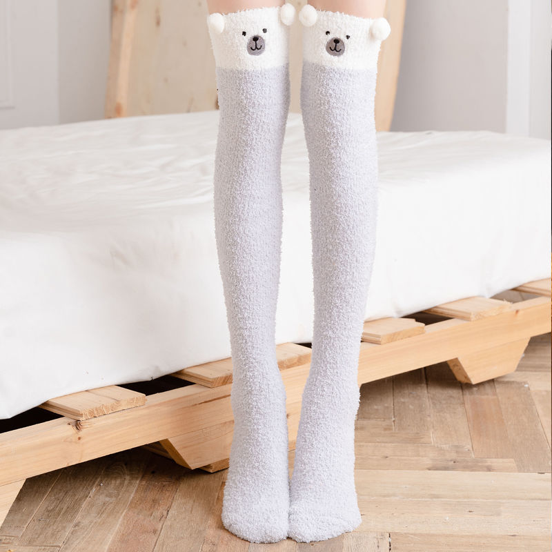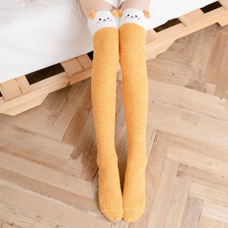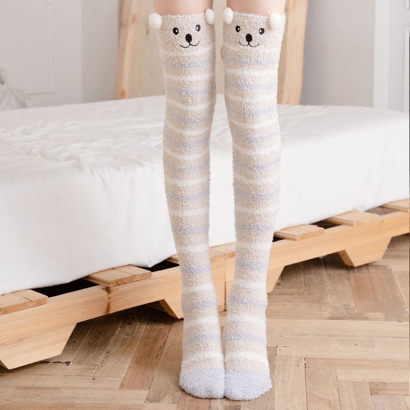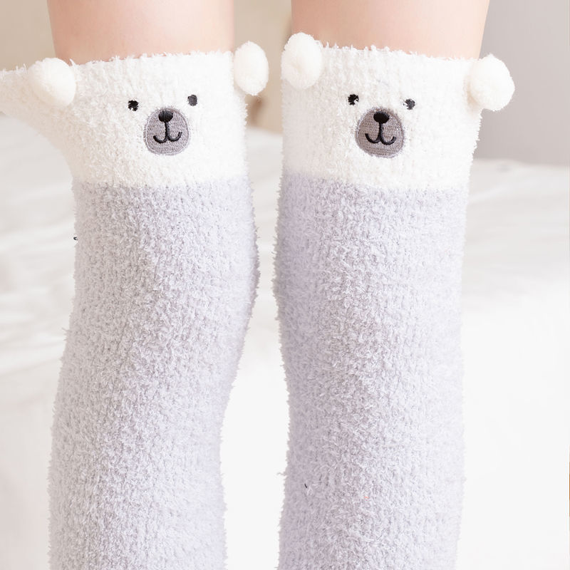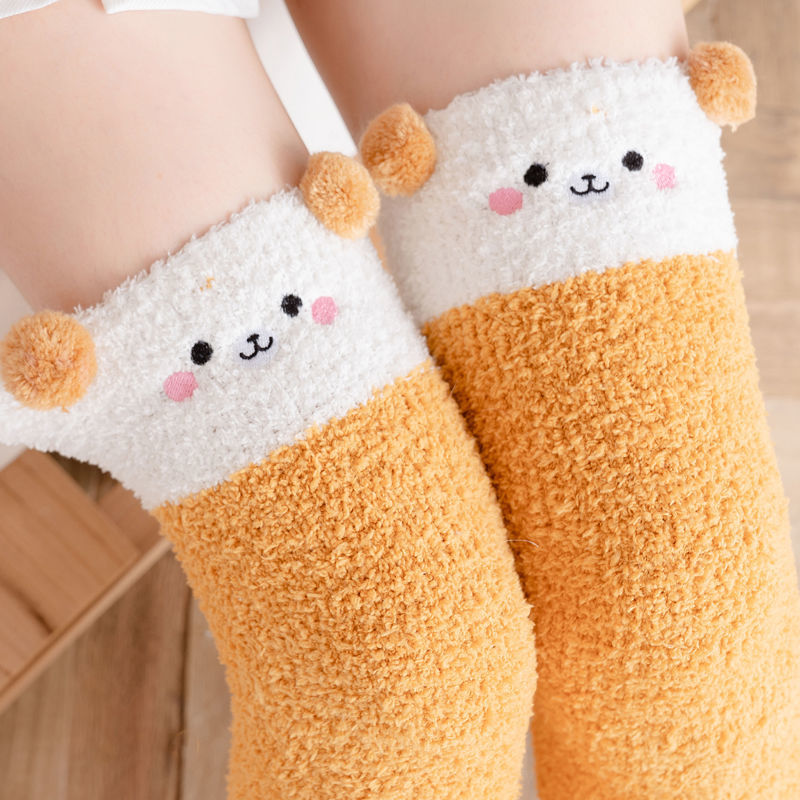 Winter Warm Knee Thick Socks Female Coral Fleece Winter Long Tube Was Thin Jk Student Cute Bear High Tube Socks