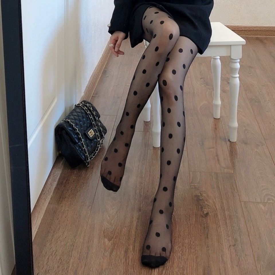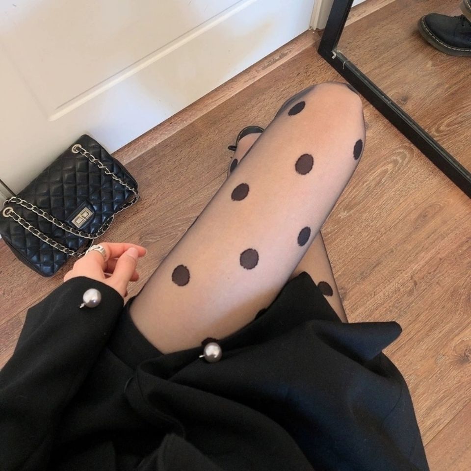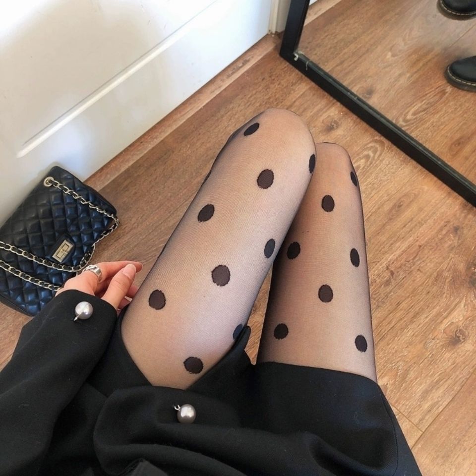 Black Polka Dot Stockings Jacquard Pantyhose Wave Point Bottoming Socks