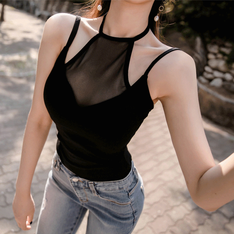 Season: Spring,Summer,Autumn Size:S,M,L Color:Black,White Sleeves:Sleeveless Style:Sexy Pattern Type:Sexy Top Length:Short Occasion: Daily,Party,Beach Fabric:Polyester,Mesh Package Contents: 1*Top, without Accessorie