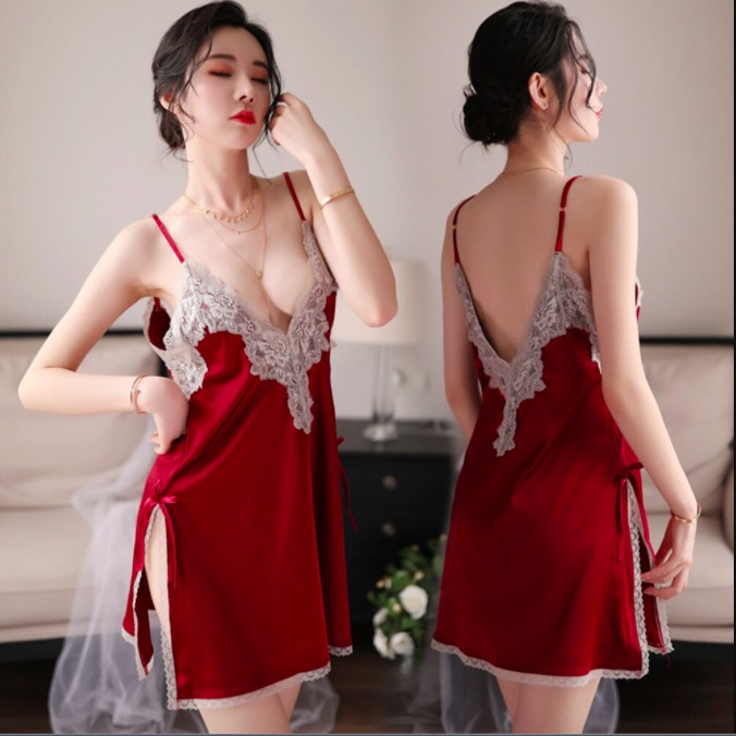 Sexy Lingerie Sexy Lace Temptation Perspective Deep V Home Sling Nightdress