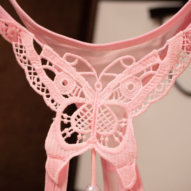Butterfly Embroidery Sexy Thong Low Waist Plastic Pearl Massage T Pants