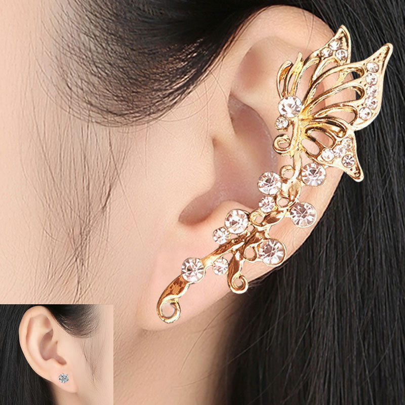 Earbone Clip Female Earrings Super Fairy Rhinestone Butterfly Earbone Clip Exaggerated Ear Clip