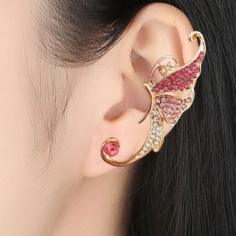 Earbone Clip Female Earrings Super Fairy Rhinestone Butterfly Earbone Clip Exaggerated Ear Clip