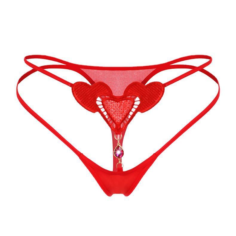 Diamond Embroidered Love Women's T-pants Sexy Transparent Hollow Out Underwear Women's T-pants