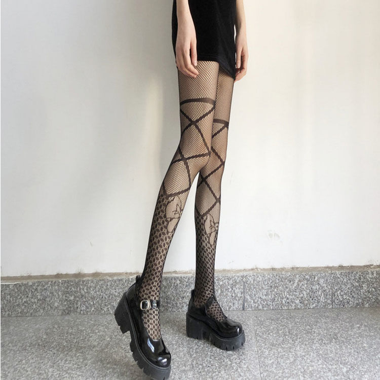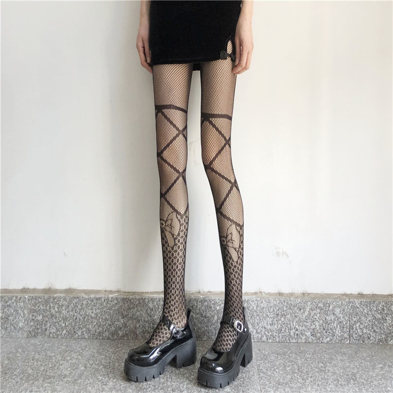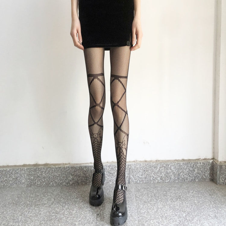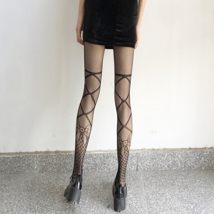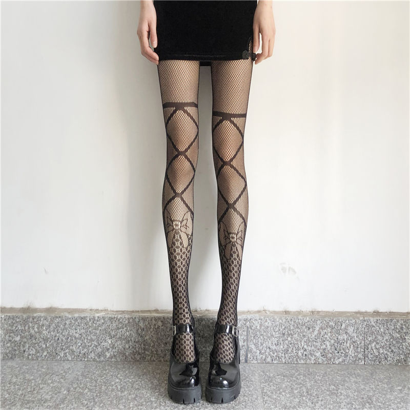Bow Tie Fishing Net Socks JK Black Silk Sexy Hollow One-piece Pantyhose