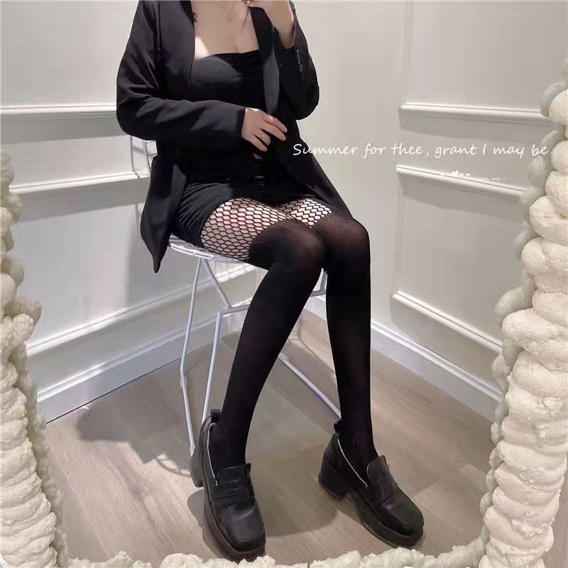 Black Stockings Fake Suspenders Fashion Stitching Fishnet Hollow Personality Sexy Pantyhose