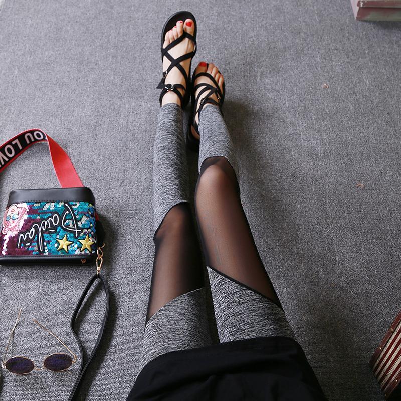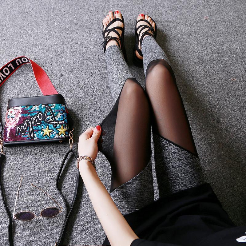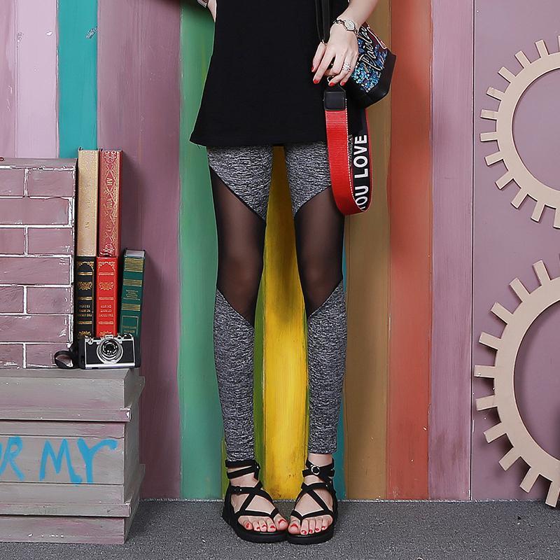 New Mesh Stitched Pants With High Waist And Thin Nine Point Trousers