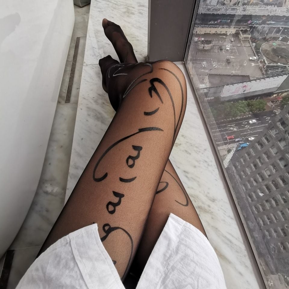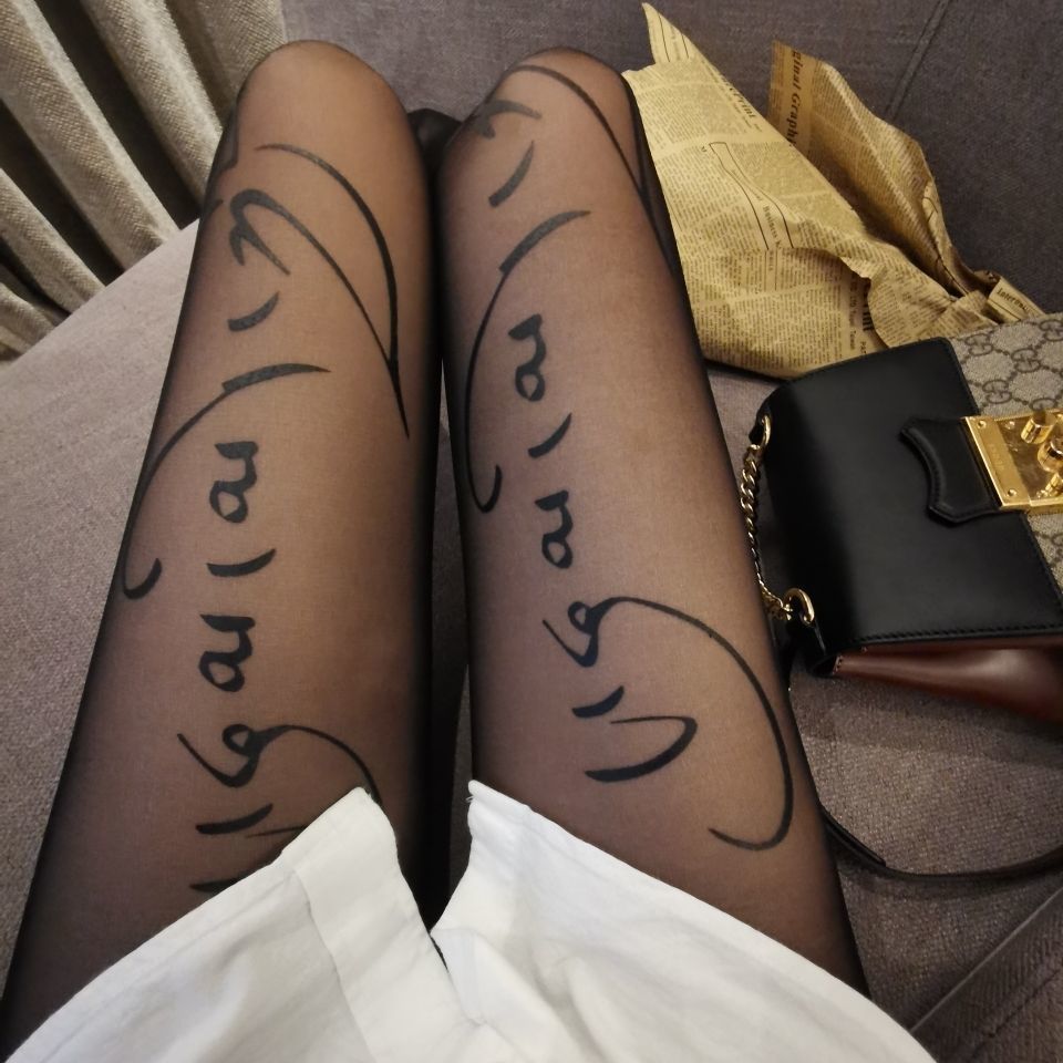 Alphabet Stockings Nightclub Sexy Hot Girl Black Silk Pantyhose