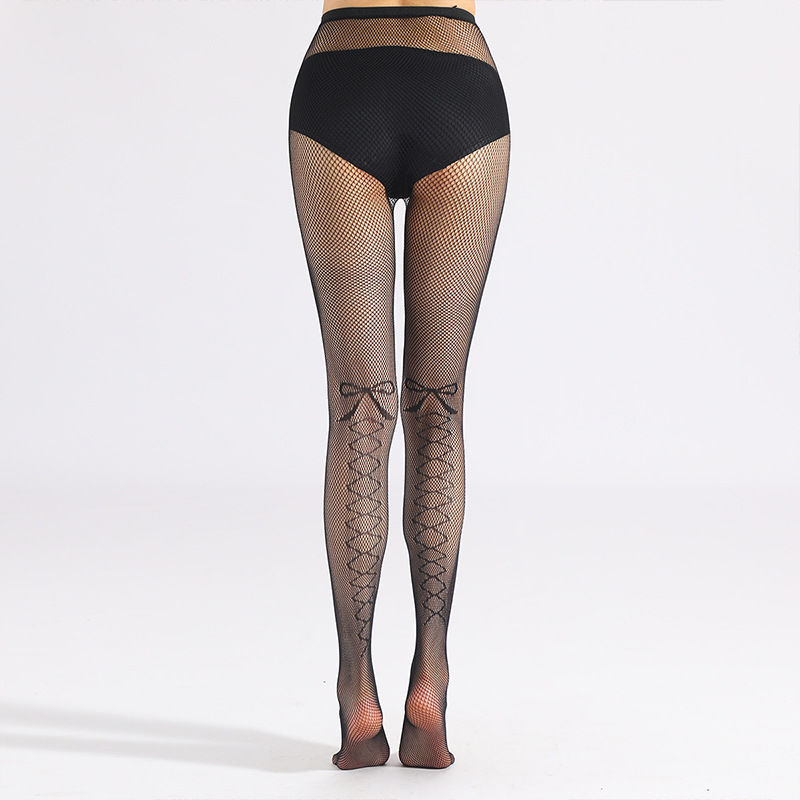 Fashion Bow Pattern Decorative Mesh Stockings Hot Diamond Pantyhose Hollow All-match Black Long Stockings