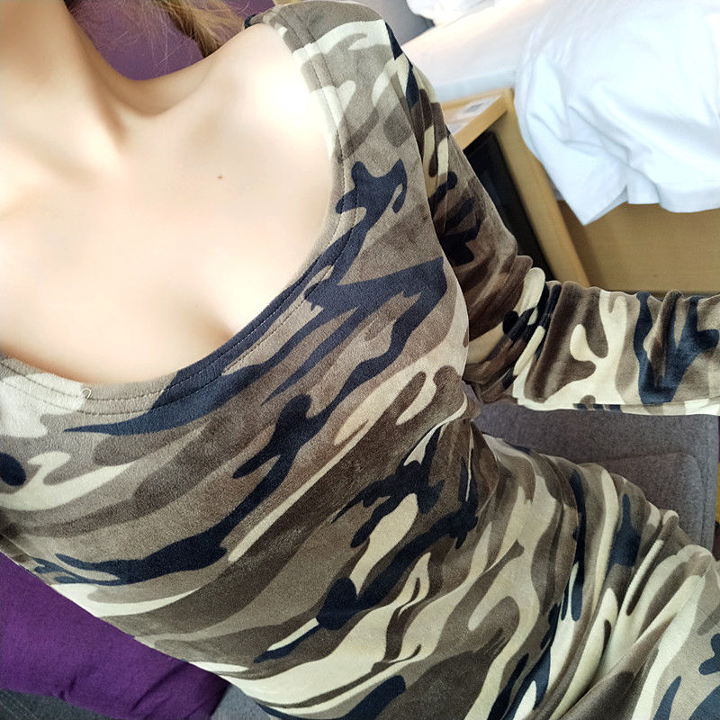 Sexy Nightclub Low Cut Trend Camouflage Printed Long Sleeve Dress