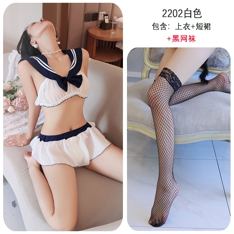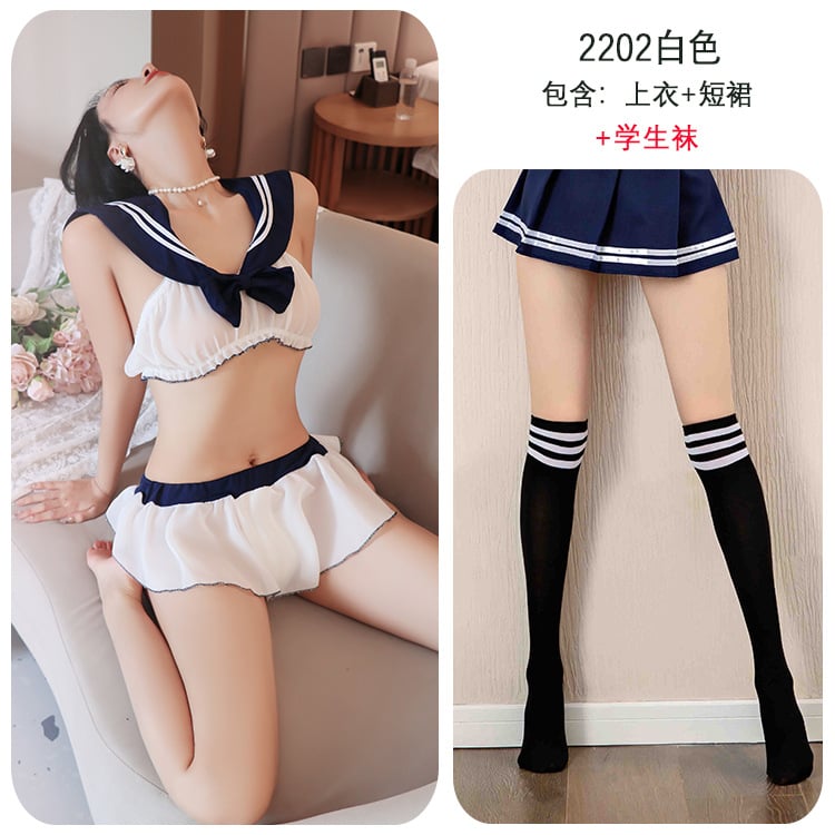 Sexy Openwork Lace Student Suit Uniform Sexy Underwear (Free stockings style)